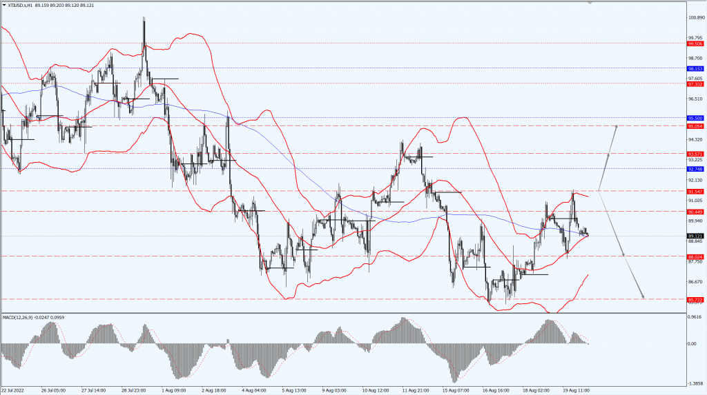 • 如果油价运行于 91.54 一线下方,届时关注 88.02 和 85.72 位置的支撑力度。