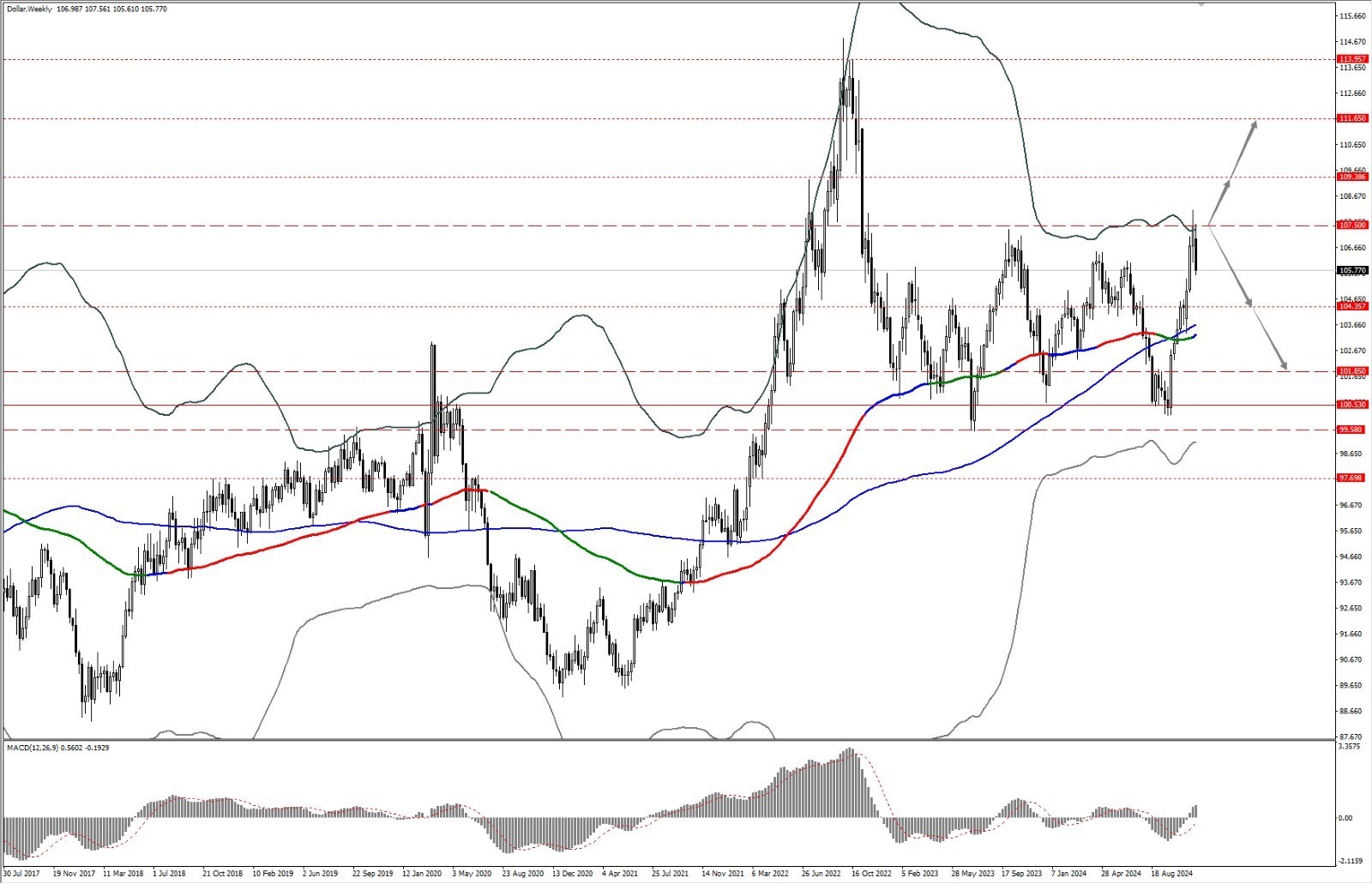 • 如果美指运行于 107.50 一线下方,则依次关注 104.35 和 101.85 两个位置的支撑力度;