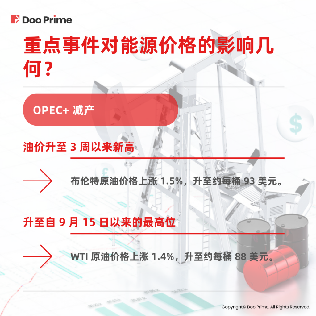 2022 年 10 月,OPEC+ 为支撑油价而启动减产。减产消息落地后,布伦特和 WTI 原油价格分别应声上涨 1.5% 及 1.4%,升至逾 93 美元和 88 美元一桶。