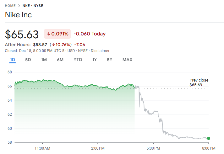 此外,Nike 公布的第三季度业绩指引不及市场预期,管理层预计短期营收增速仍将承压。受此影响,Nike 盘后股价下跌约 10%。分析人士指出,公司正面临来自运动服饰竞争加剧与亚洲市场需求放缓的双重挑战,短期内股价表现或持续波动。