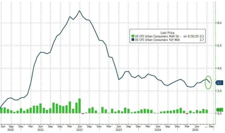 12 月 18 日至 19 日,美国政府因长期关门影响到经济数据的正常采集,最新公布的 11 月核心消费者物价指数 (CPI) 年增率意外降至 2.6%,创下 2021 年以来新低。但这一“降温”结果引发经济学界广泛质疑。