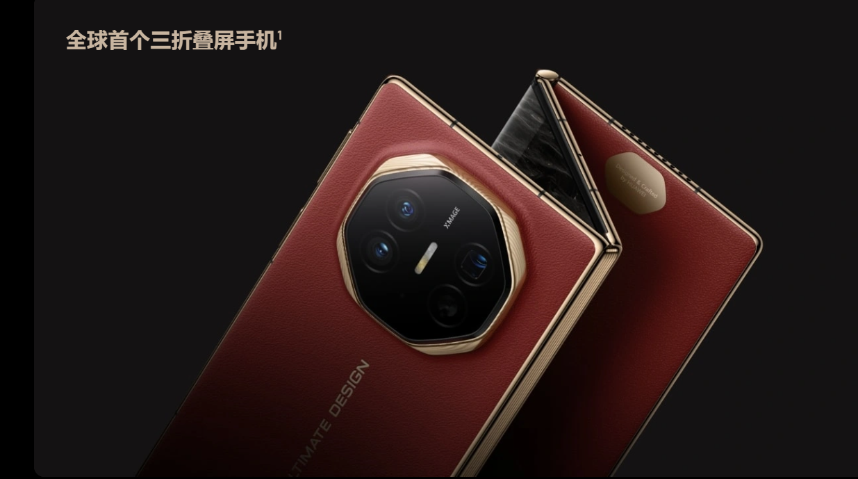 10 日,华为首款三折叠屏手机——华为 Mate XT 非凡大师正式发布。余承东表示,这款三折叠屏手机是“全球最大折叠屏手机”和“全球最薄折叠屏手机”,和现有的横向折叠屏手机相比,屏幕显示面积提升了 2 倍,更适合用于资料查看等办公场景以及视频观赏等娱乐场景。