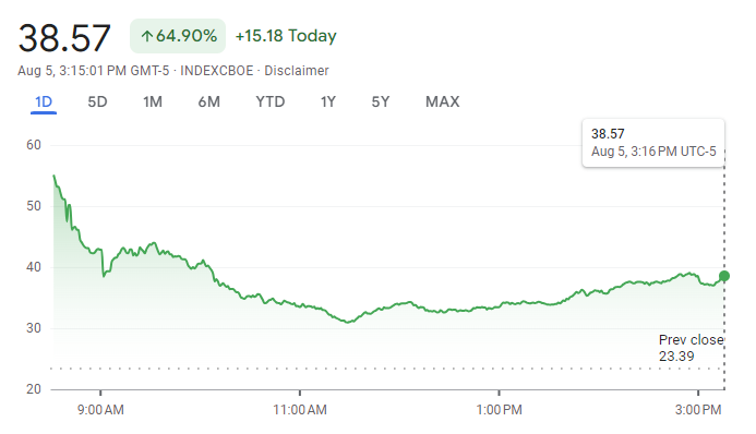 全球股市集体崩盘,VIX 恐慌指数飙升 64.90% 至 38.57,表示市场或存在极大不确定性。
