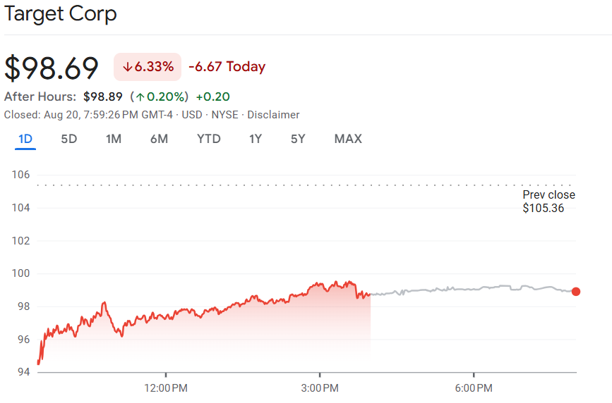 8 月 20 日,美国零售商 Target(TGT)公布 2025 年第二季度财报,营收小幅下滑 0.9% 至 252.1 亿美元,但仍优于市场预期的 249 亿美元;每股收益(EPS)为 2.05美元,高于预期的 2.04 美元。不过,营业利润率下滑 1.2%,主要受折扣幅度增加、订单取消成本上升,以及消费者支出转向利润率较低商品的影响。