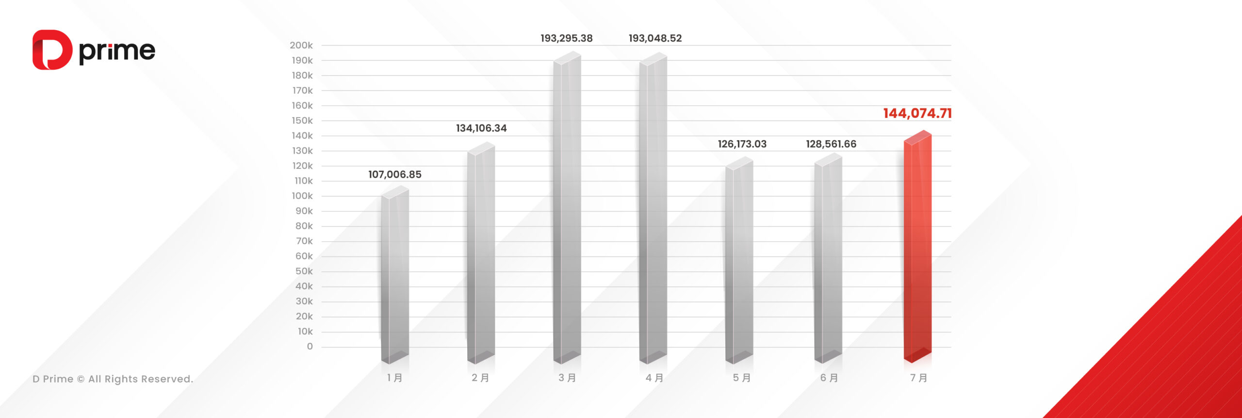 D Prime 交易量报告 | 近日,以金融科技为核心的互联网券商 D Prime 发布了 2025 年 7 月份交易量报告。