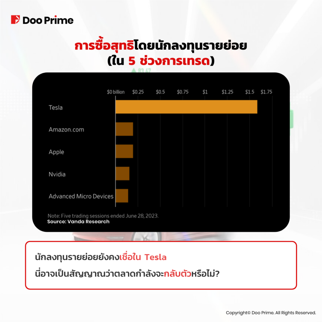 และสุดท้าย จากงานวิจัยของ Vanda นักลงทุนรายย่อยมีความเชื่อมั่นอย่างมากต่อ Tesla ในช่วง 5 รอบการซื้อขายล่าสุดในเดือนมิถุนายน