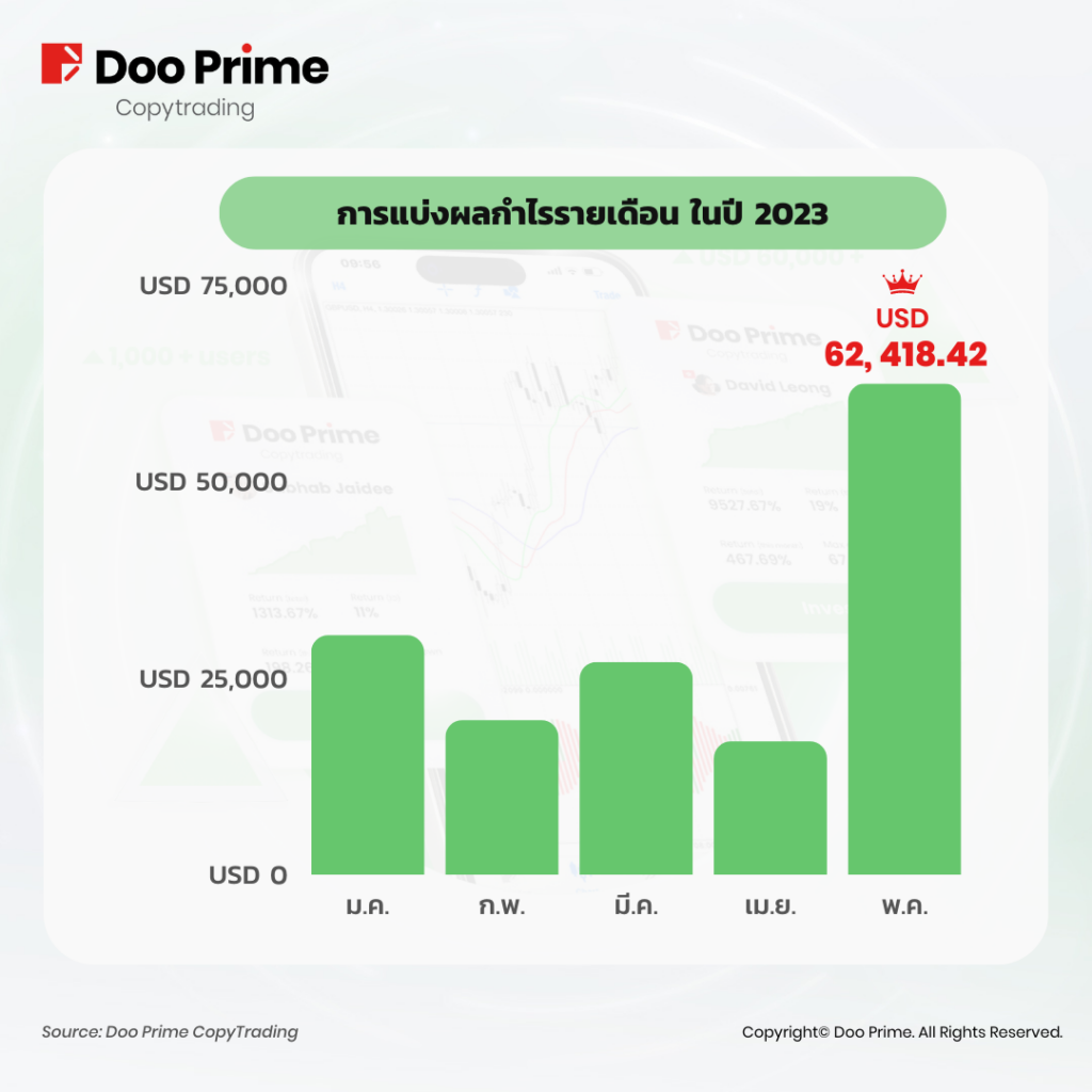 Doo Prime CopyTrading ทำกำไรในเดือนพฤษภาคม 60,000 USD ทะลุสถิติใหม่