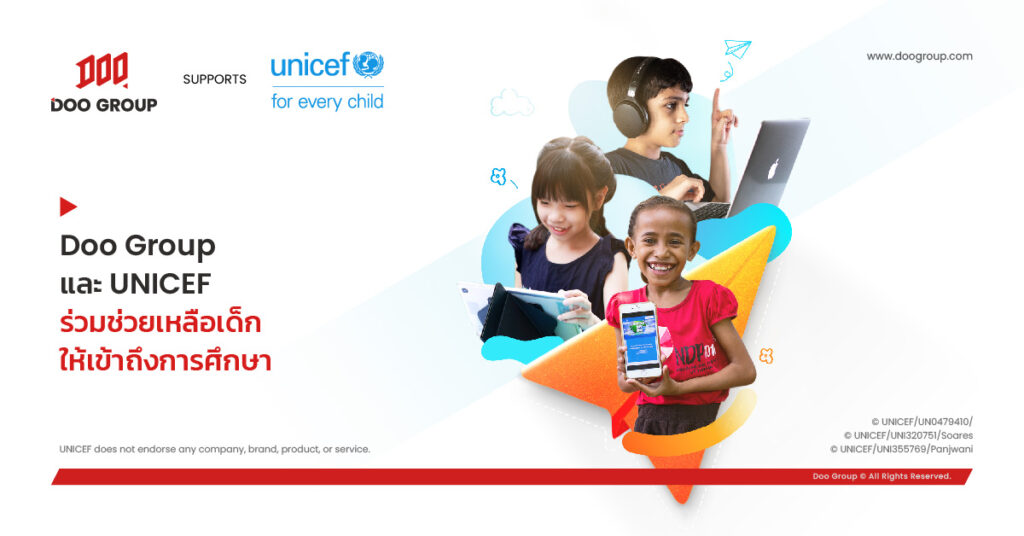 การศึกษาช่วยให้ผู้คนมีความรู้ ทักษะ และคุณค่าที่จำเป็นต่อการสร้างโลกที่ดีขึ้น Doo Group จึงมุ่งมั่นอย่างเต็มที่ที่จะสนับสนุน UNICEF ในการส่งเสริมการศึกษาอย่างครอบคลุม