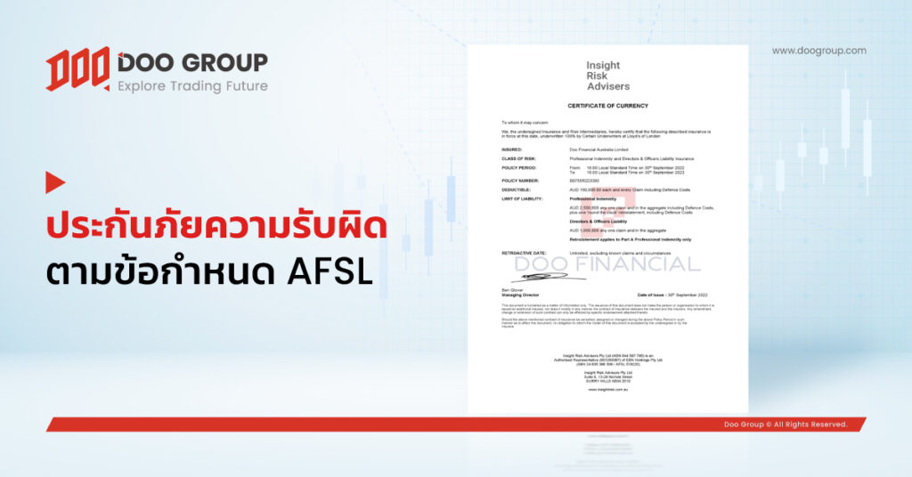 ในเดือนกันยายน Doo Financial Australia Limited ซึ่งเป็นแบรนด์ของ Doo Group ได้ซื้อ Professional Indemnity Insurance (PII) จาก Lloyd’s of London ซึ่งทำให้บริษัทต้องปฏิบัติตามข้อผูกพันในฐานะผู้รับใบอนุญาต Australian Financial Services License (AFSL)